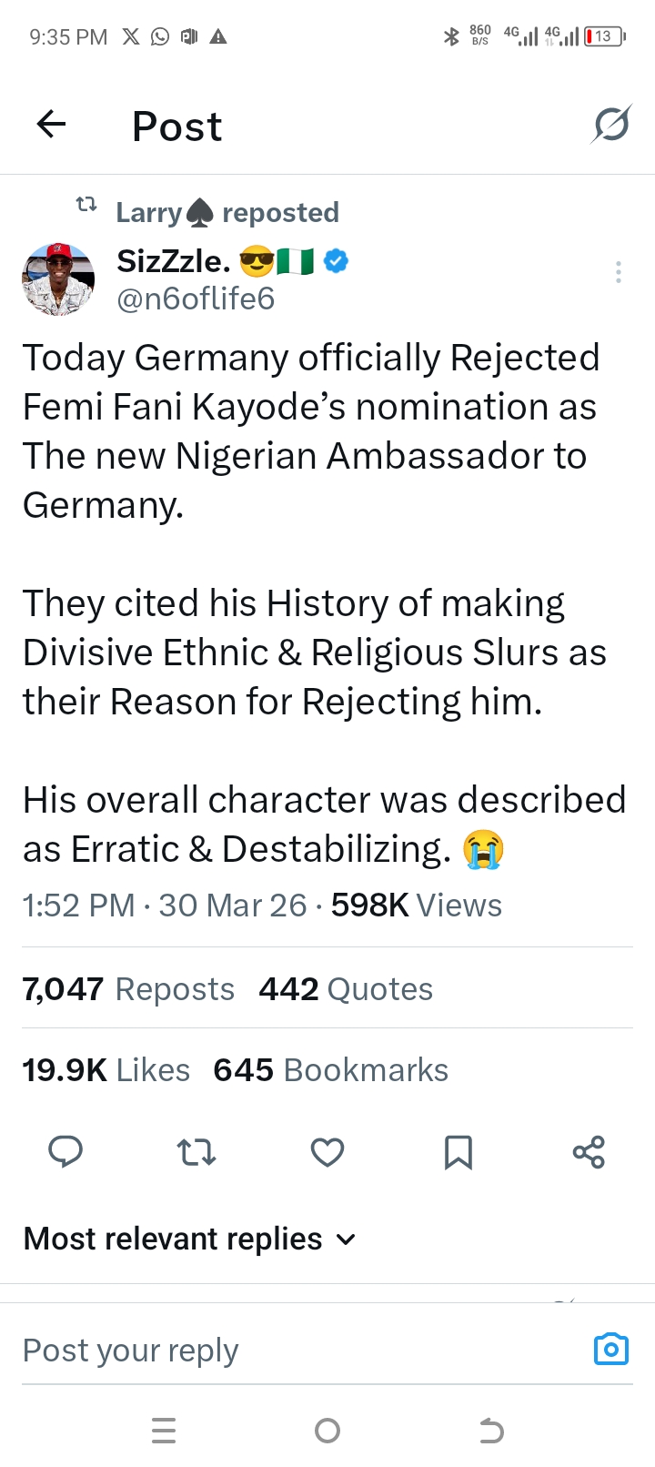 According to narratives gaining traction online, groups sympathetic to Peter Obi are said to have mobilized opposition to Fani-Kayode’s purported nomination by submitting petitions to German authorities. These alleged petitions reportedly cited concerns over his past public statements and political conduct, arguing that such a profile could be inconsistent with the expectations of diplomatic representation in a country like Germany. While the claims have generated intense reactions across political divides, no verifiable evidence has been publicly presented to confirm that such petitions were formally received or acted upon.