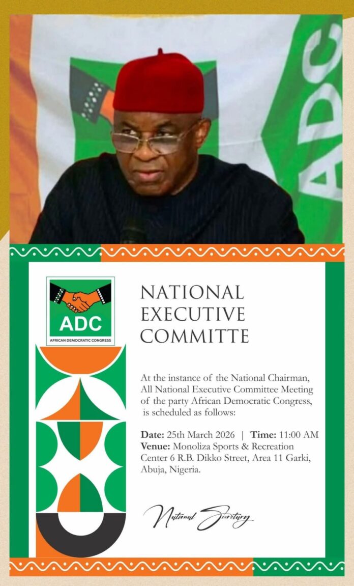 The National Chairman of the African Democratic Congress (ADC), David Mark, has called for unity, discipline, and renewed commitment among party leaders as the opposition party positions itself as a credible alternative ahead of future elections.