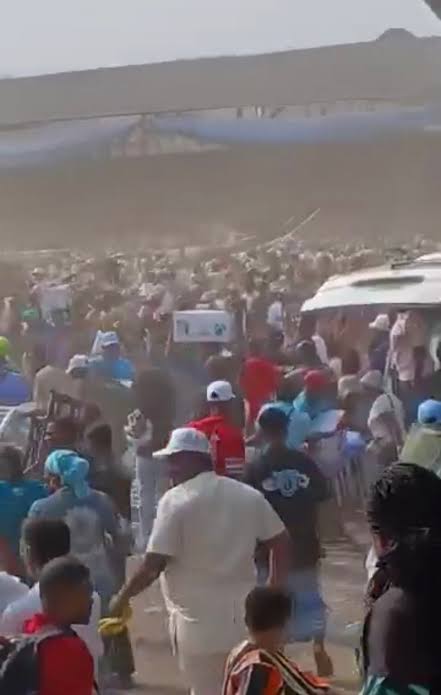 Videos circulating on social media showed large groups of people scrambling for the materials while attempts by organisers to control the crowd proved unsuccessful.