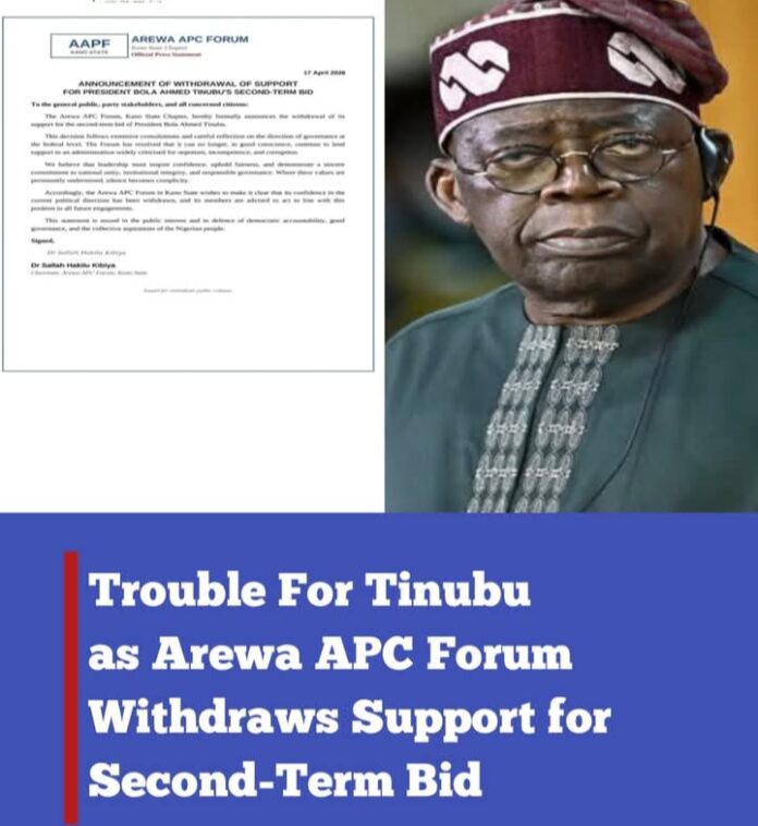 Kano, Nigeria — A political statement circulating from a group identified as the Arewa APC Forum in Kano State has reportedly announced a withdrawal of support for President Bola Ahmed Tinubu’s second-term ambition, citing allegations of nepotism, incompetence, and corruption.