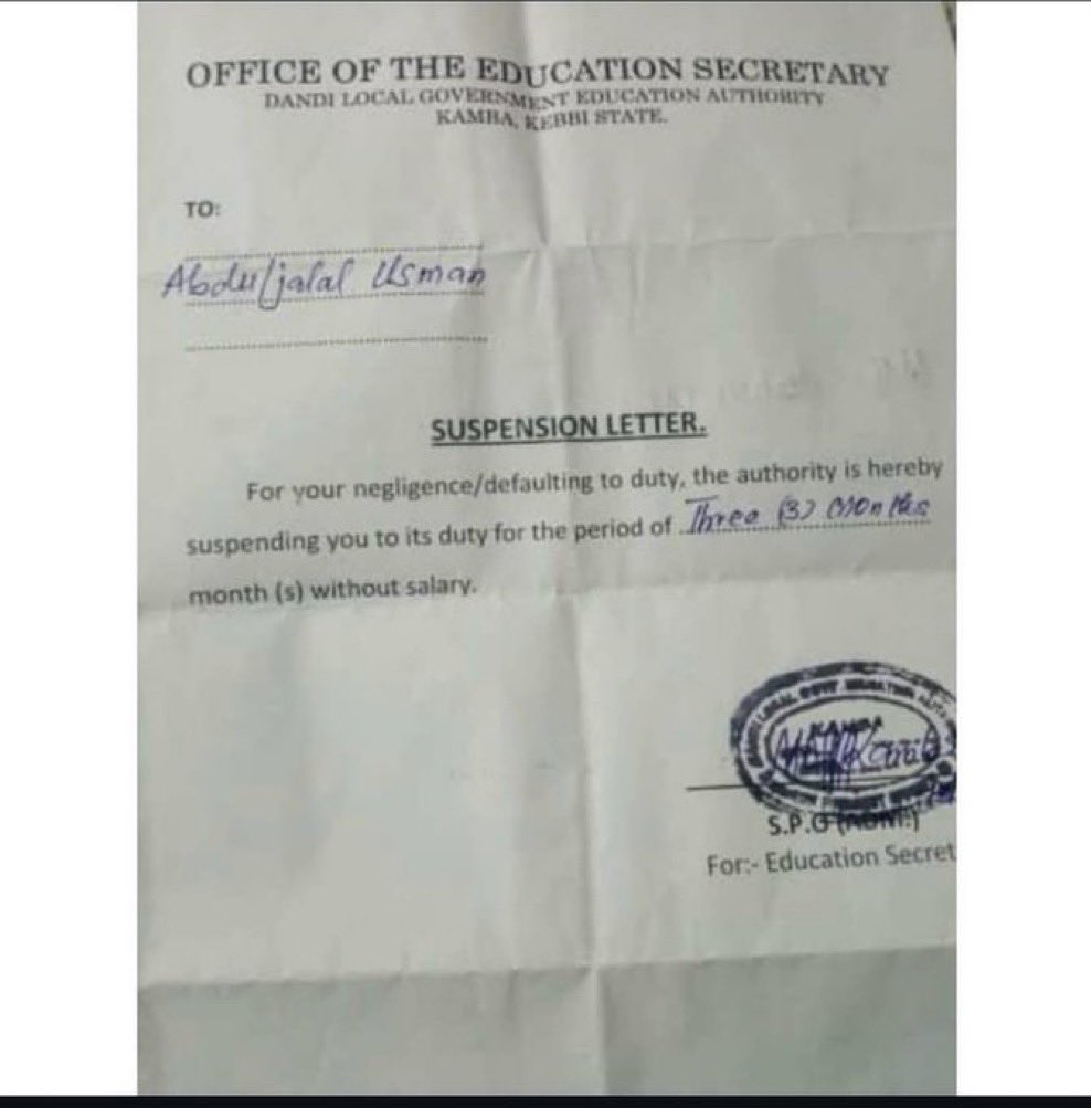 The development has generated reactions across social media, with critics questioning the fairness of the disciplinary action and calling for clarification from the Kebbi State government.