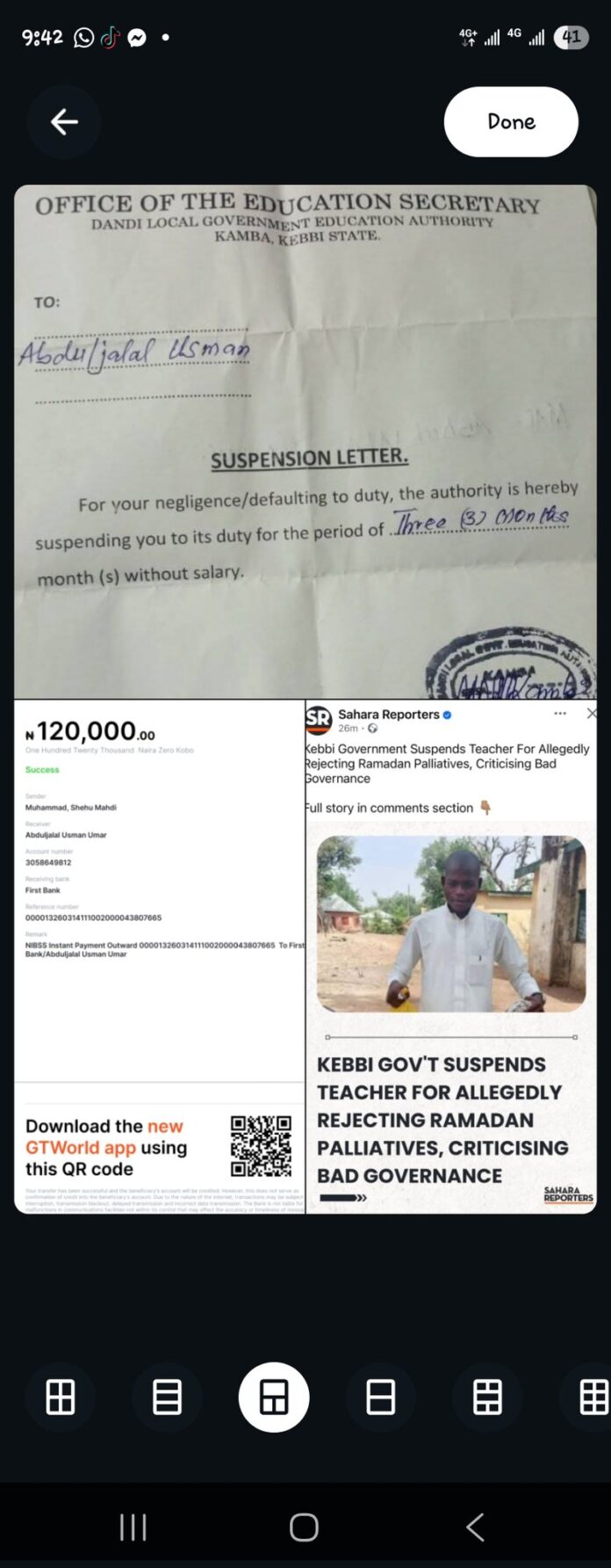 A prominent businessman and philanthropist from Kaduna, Mahadi Shehu, has pledged to support the suspended Kebbi school teacher, Abduljalal Usman by offering him lifetime employment if he loses his job.