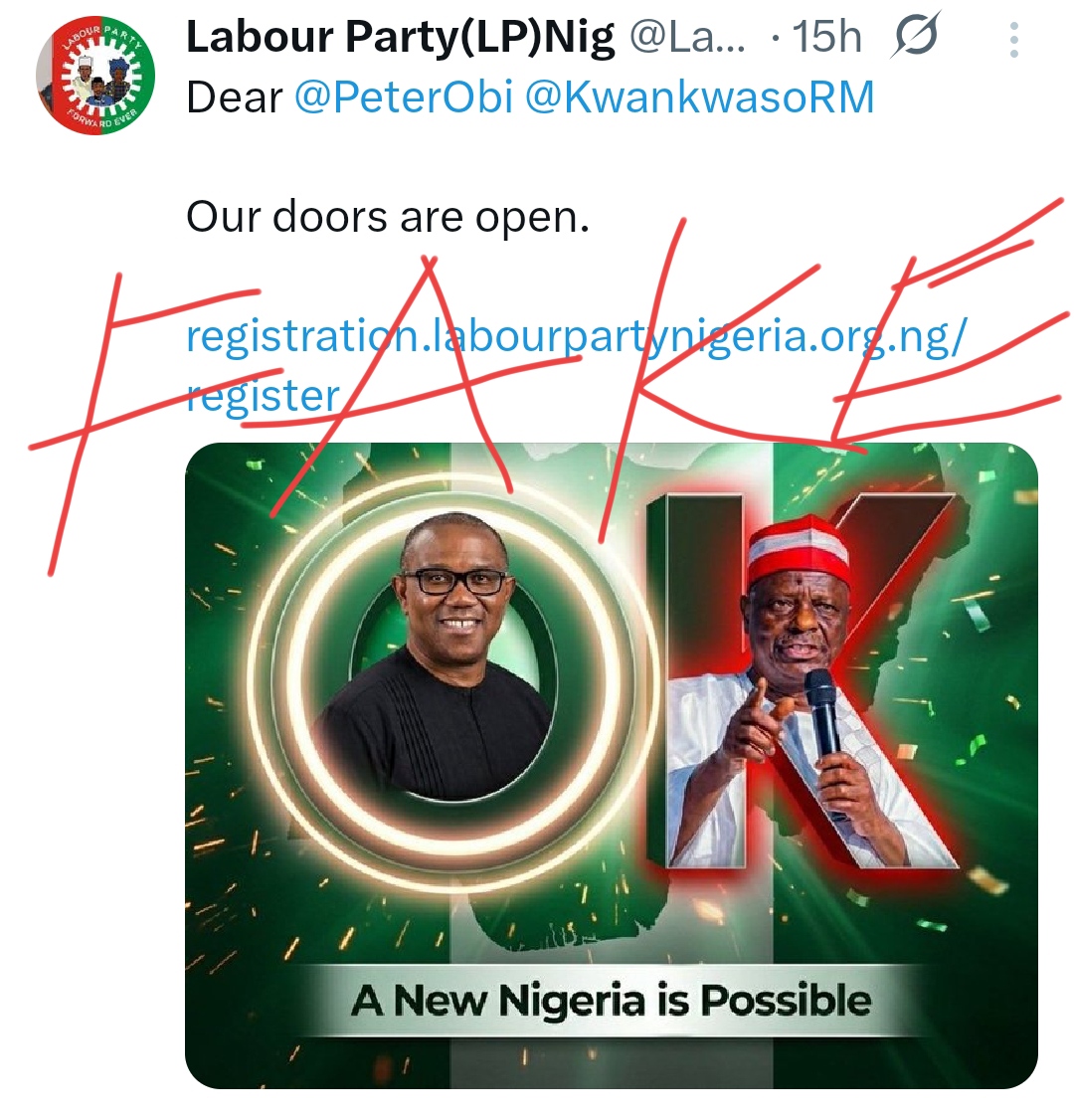 The Labour Party also dismissed circulating claims suggesting it is expecting the return of Peter Obi and Rabiu Musa Kwankwaso, describing such reports as entirely false and unauthorized.