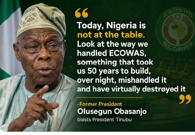Former President Olusegun Obasanjo has delivered a sharp criticism of President Bola Ahmed Tinubu’s handling of regional diplomacy, warning that Nigeria’s influence in West Africa has significantly declined under the current administration.