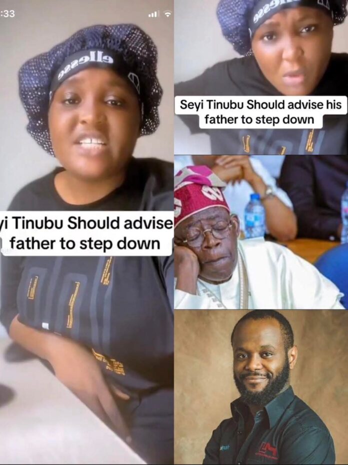 A Nigerian woman has sparked intense reactions online after openly criticizing Tinubu, urging Seyi Tinubu to advise his father, Tinubu, to step down from office amid worsening economic and security conditions.